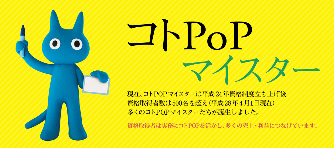 私たちコトPOPマイスターは、地球上のスベテのモノPOPをコトPOPに変えることを宣言します。